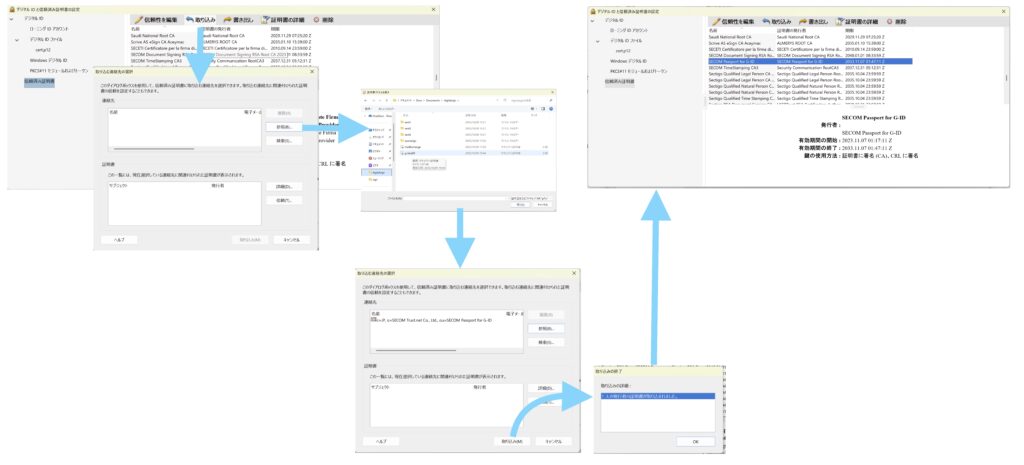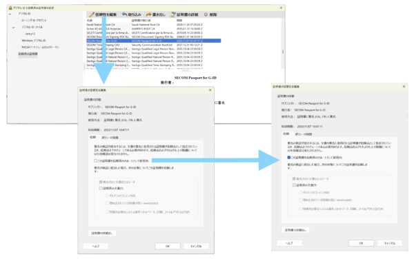 信頼済み証明書の一覧の中に「SECOM Passport for G-ID」が入りました。